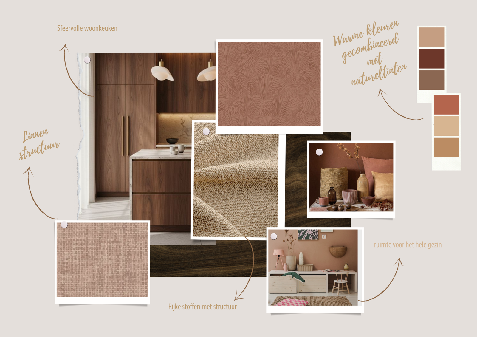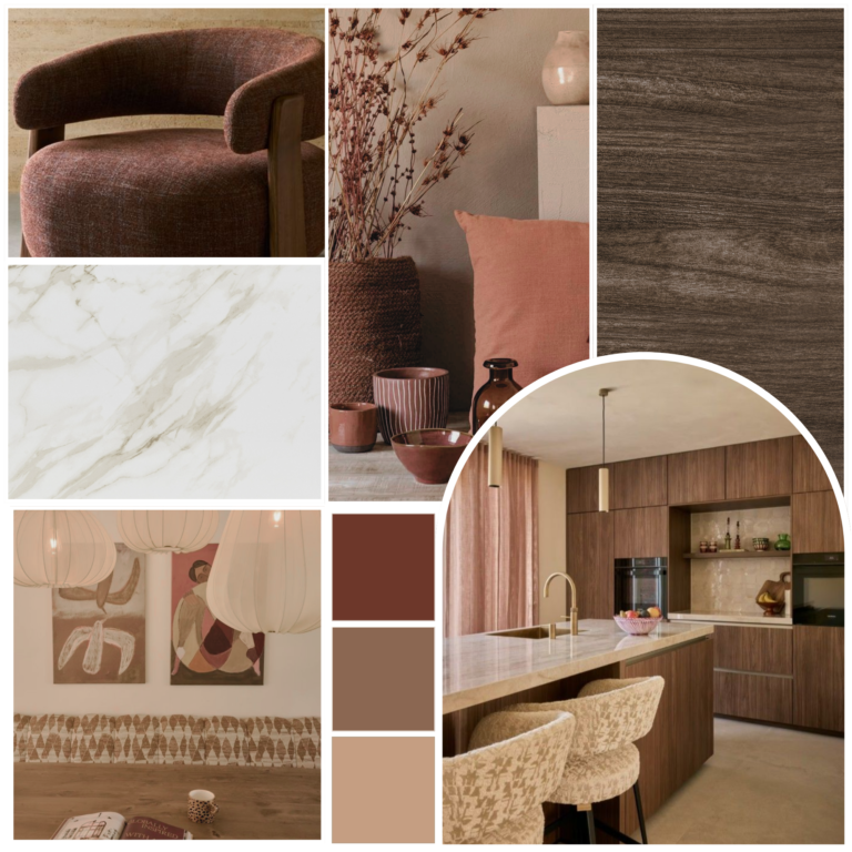 In het interieur is gekozen voor een warme, eigentijdse stijl. Door het gebruik van warme kleuren en een combinatie van verschillende materialen, waardoor het geheel tijdloos en gebalanceerd aanvoelt.